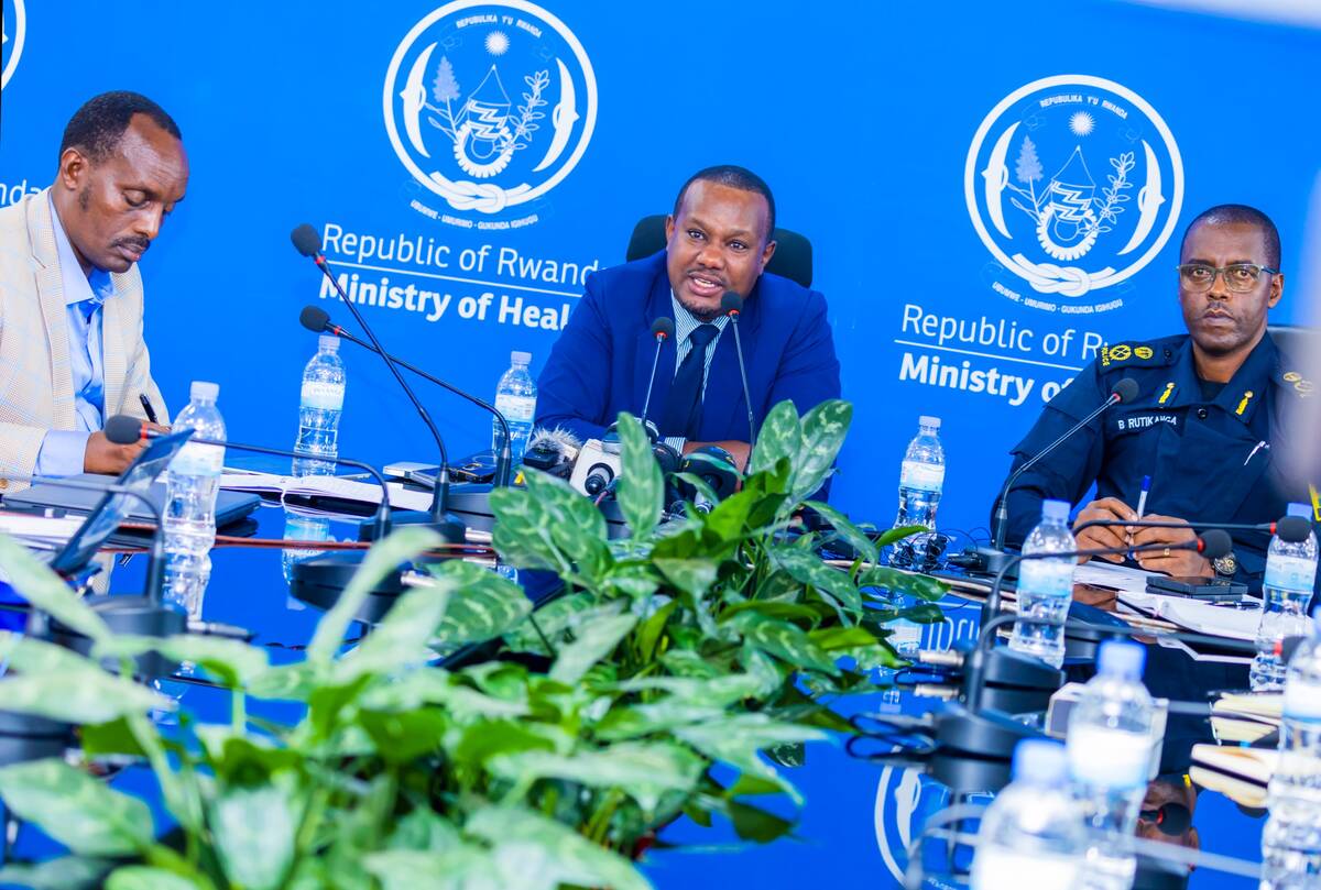 Dr Gishoma Darius, ushinzwe serivisi z’ubuzima bwo mu mutwe muri RBC (Hagati), ACP Rutikanga Boniface, Umuvugizi wa Pilisi (i Buryo) na Mufurukye Fred, Umuyobozi mukuru wa Serivisi Ngororamuco z’igihugu (i Bumoso). Foto RNP